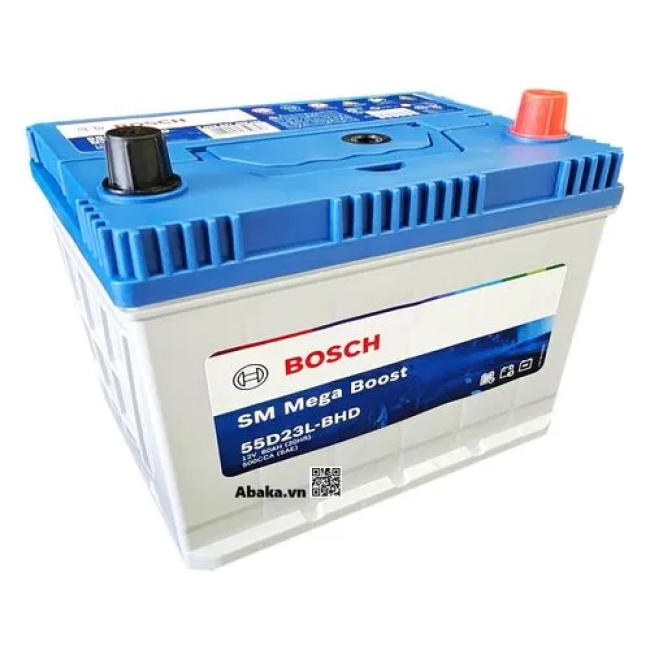 Ắc quy Bosch 55D23R-BHD 12V 60AH là dòng ắc quy khởi động mạnh mẽ, độ bền cao, thích hợp cho các dòng xe như Toyota Innova, Mazda BT-50, Nissan Navara. Ứng dụng công nghệ Đức tiên tiến giúp sạc nhanh, chống rò rỉ, tuổi thọ vượt trội. Sản phẩm chính hãng, bảo hành toàn quốc.