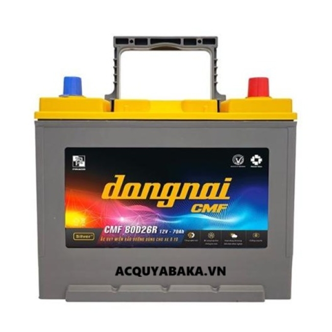 Ắc quy Đồng Nai 80D26R 12V 70AH là sản phẩm chính hãng của Công ty PINACO – Ắc Quy Đồng Nai, được sản xuất trên dây chuyền hiện đại theo tiêu chuẩn JIS (Japanese Industrial Standard) của Nhật Bản. Đây là dòng bình có hiệu suất cao, độ bền vượt trội, được thiết kế dành riêng cho các dòng xe SUV, xe bán tải, xe du lịch 7–9 chỗ và máy công nghiệp nhẹ.