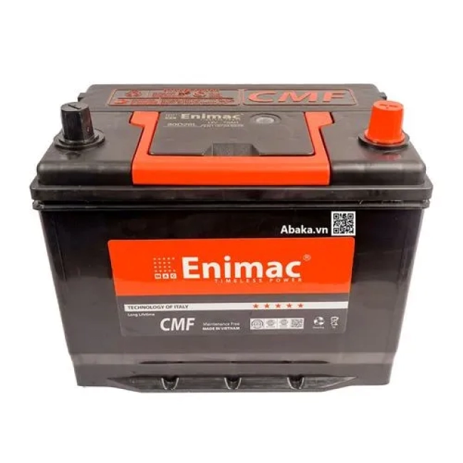 Ắc quy Enimac 80D26L 12V 70AH là loại ắc quy CMF (Sealed Maintenance Free), khô, kín khí và không cần bảo dưỡng, đáp ứng tiêu chuẩn công nghệ Ý. Sản phẩm được abaka.vn phân phối chính hãng với bảo hành 9 tháng.