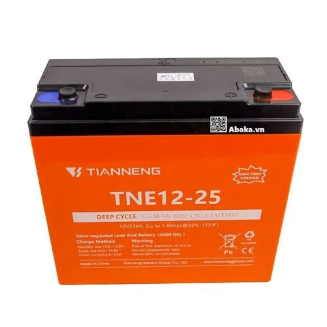 • Ắc quy Xe Điện Tianneng 12V-25Ah – dòng ắc quy kín khí dung lượng cao, hiệu suất mạnh mẽ, sạc nhanh và tuổi thọ dài lâu. Phù hợp cho xe điện, xe máy điện, UPS, thiết bị năng lượng mặt trời. Sản phẩm chính hãng Tianneng Energy, bảo hành toàn quốc, phân phối tại Ắc quy Abaka TP.HCM, giao hàng tận nơi.