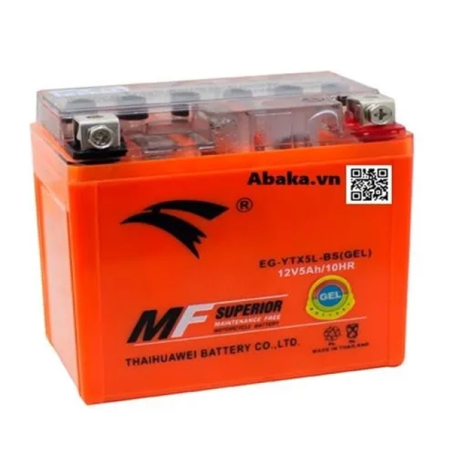 • Bình Ắc quy Xe Máy Eagle EG-YTX5L-BS (Gel) 12V 5Ah – dòng ắc quy công nghệ Gel tiên tiến, dung lượng 5Ah, sạc nhanh, khởi động mạnh, chống rò rỉ và bền bỉ. Phù hợp cho các dòng xe số, tay ga nhỏ như Wave, Sirius, Vision, Janus, Lead, Air Blade… Sản phẩm chính hãng Eagle Battery, bảo hành toàn quốc, phân phối bởi Ắc quy Abaka TP.HCM, giao hàng tận nơi.