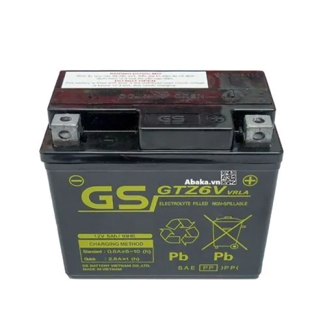 Bình Ắc quy Xe Máy GS GTZ6V 12V 5Ah – dòng ắc quy khô kín khí, dung lượng 5Ah, sạc nhanh, khởi động mạnh, tuổi thọ cao. Phù hợp cho các dòng xe số, xe thể thao như Wave, Sirius, ... Sản phẩm chính hãng GS công nghệ Nhật Bản, phân phối bởi Ắc quy Abaka TP.HCM, bảo hành toàn quốc.