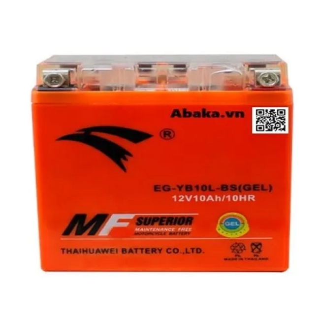 Bình Ắc quy Xe Mô Tô Eagle EG-YB10L-BS (Gel) 12V 10Ah – dòng ắc quy Gel cao cấp, dung lượng 10Ah, khởi động mạnh, sạc nhanh, chống rò rỉ, an toàn và bền bỉ vượt trội. Phù hợp cho xe mô tô, xe tay côn, tay ga thể thao như Exciter, Winner, CBR150, Air Blade... Sản phẩm chính hãng Eagle Battery, bảo hành toàn quốc, phân phối bởi Ắc quy Abaka TP.HCM, giao hàng tận nơi, lắp đặt miễn phí.
