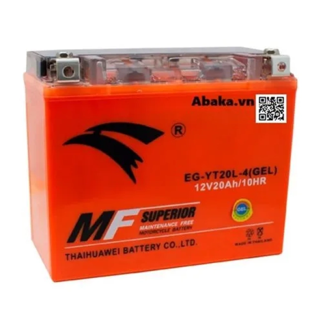 • Bình Ắc quy Xe Mô Tô Eagle EG-YT20L-4 (Gel) 12V 20Ah – dòng ắc quy Gel cao cấp dung lượng lớn, sạc nhanh, khởi động mạnh mẽ, chống rò rỉ, tuổi thọ cao và an toàn tuyệt đối. Phù hợp cho xe mô tô phân khối lớn, xe tay côn, xe thể thao, xe touring. Sản phẩm chính hãng Eagle Battery, bảo hành toàn quốc, phân phối bởi Ắc quy Abaka TP.HCM, giao hàng tận nơi, lắp đặt miễn phí.