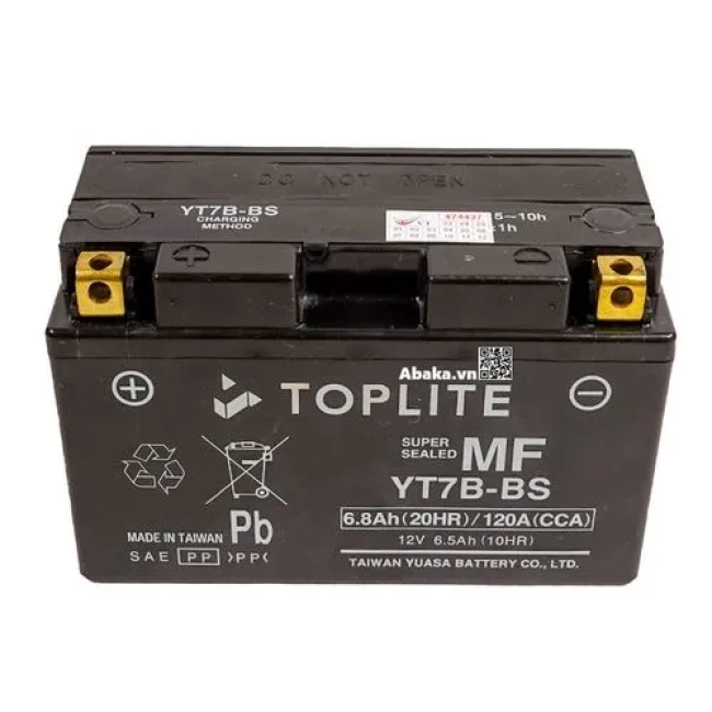 • Bình Ắc quy Xe Mô tô Toplite YT7B-BS 12V 6.5Ah – dòng ắc quy công nghệ AGM kín khí, dung lượng 6.5Ah, khởi động mạnh mẽ, chống rò rỉ và tuổi thọ cao. Phù hợp cho các dòng xe mô tô, tay côn, tay ga thể thao... Chính hãng Toplite, bảo hành toàn quốc tại TP.HCM.